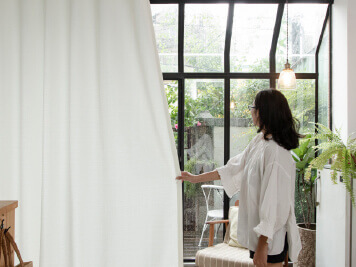 • 表面日式棉麻織紋,透光性佳,垂度佳,可下水機洗。